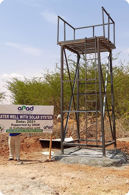 ARF’s solar-powered well system in Falayryaale now serves 6,000 families from the village and surrounding areas, along with their livestock. Powered entirely by solar energy, the system pumps water into storage tanks connected to modern tap kiosks that provide shade for users.